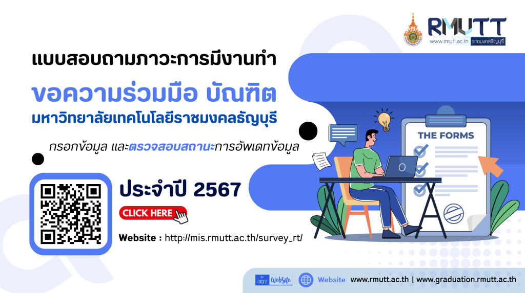 ขอเชิญ บัณฑิต มทร.ธัญบุรี ตอบแบบสอบถามภาวะการมีงานทำและการประเมินคุณภาพบัณฑิต ปีการศึกษา 2567